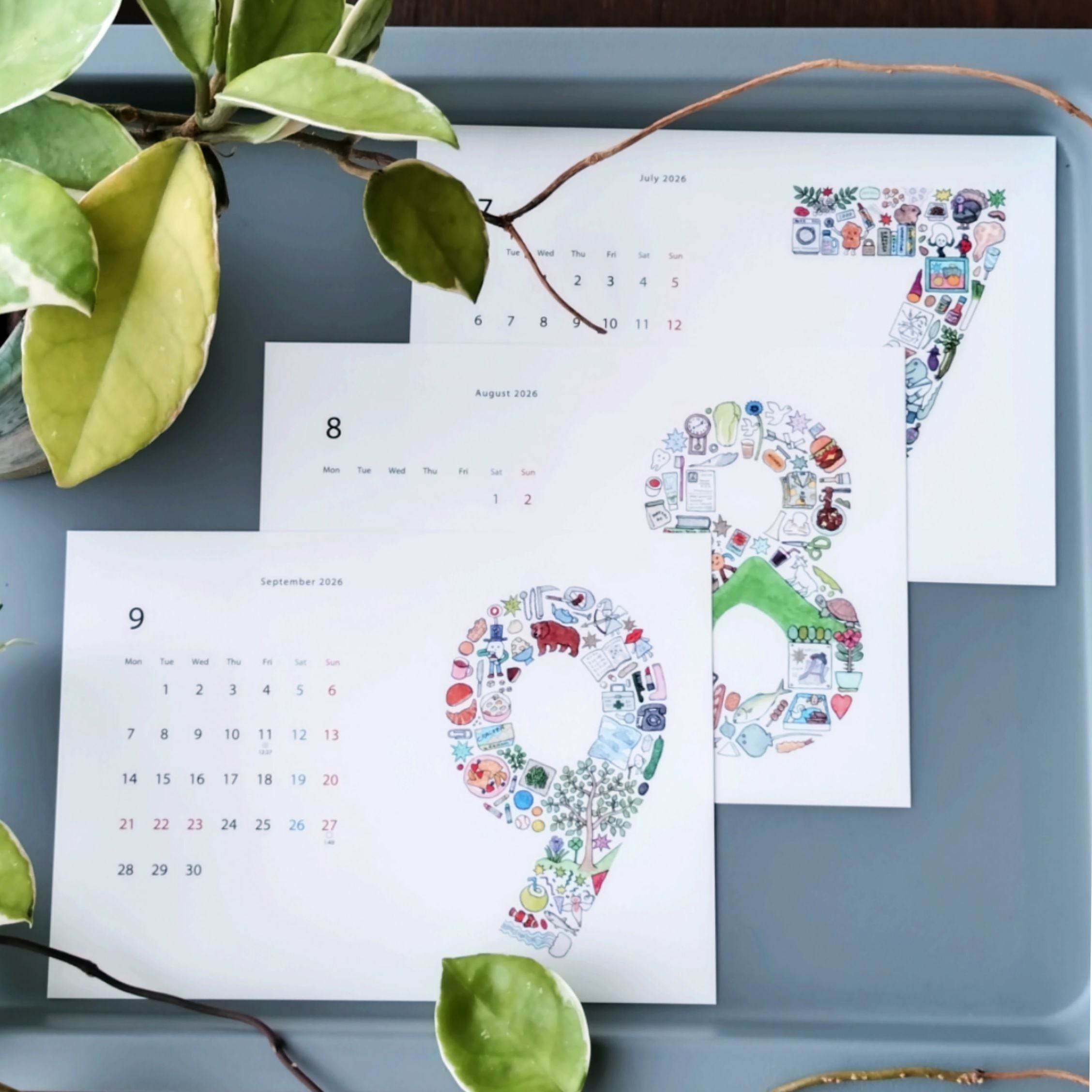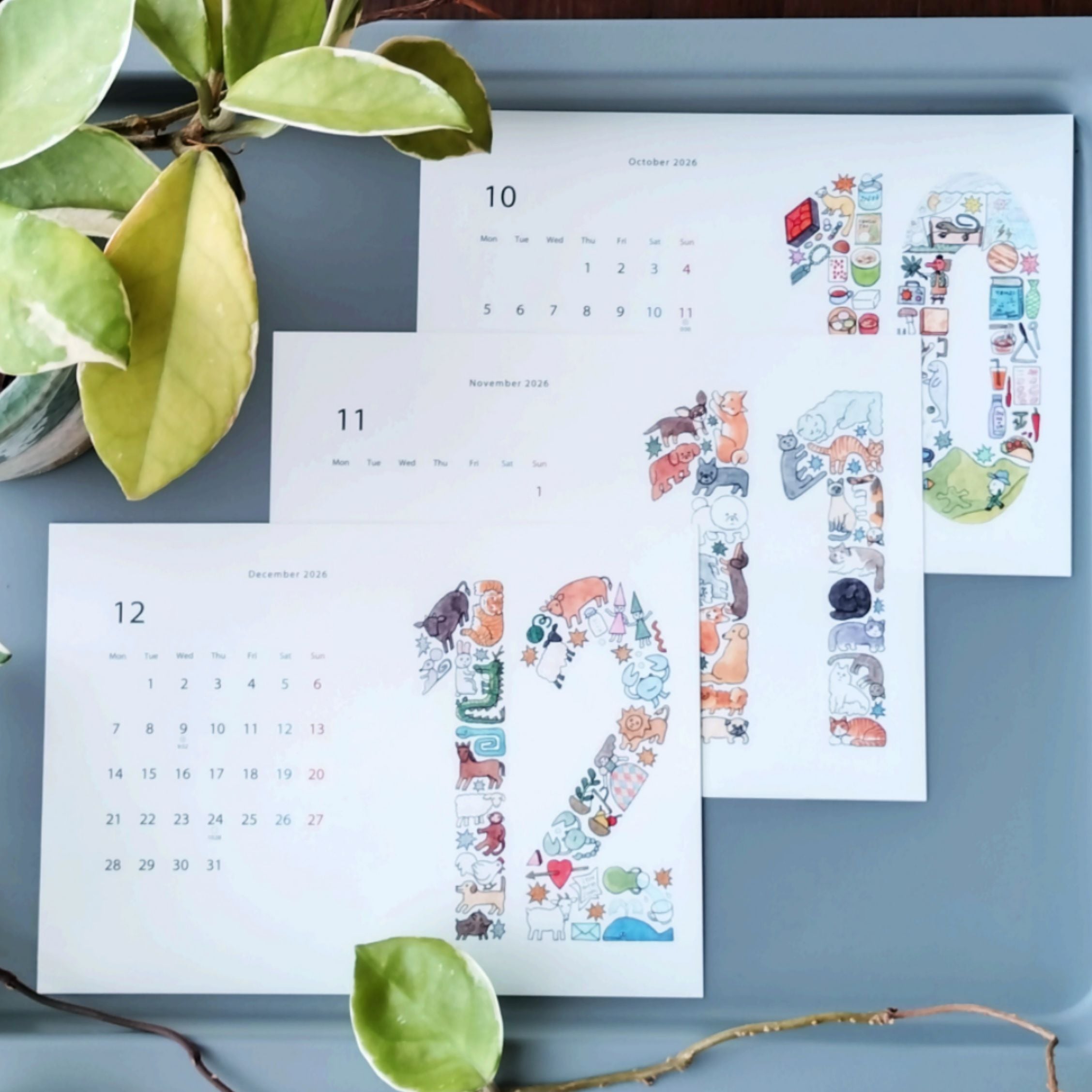 (カレンダーを使い終わった後、イラスト部分を幅10㎝でカットしていただくと、ハガキサイズのカードになります。上に“ハガキ”“POSTCARD”と書けば、郵便などで送る事もできます)