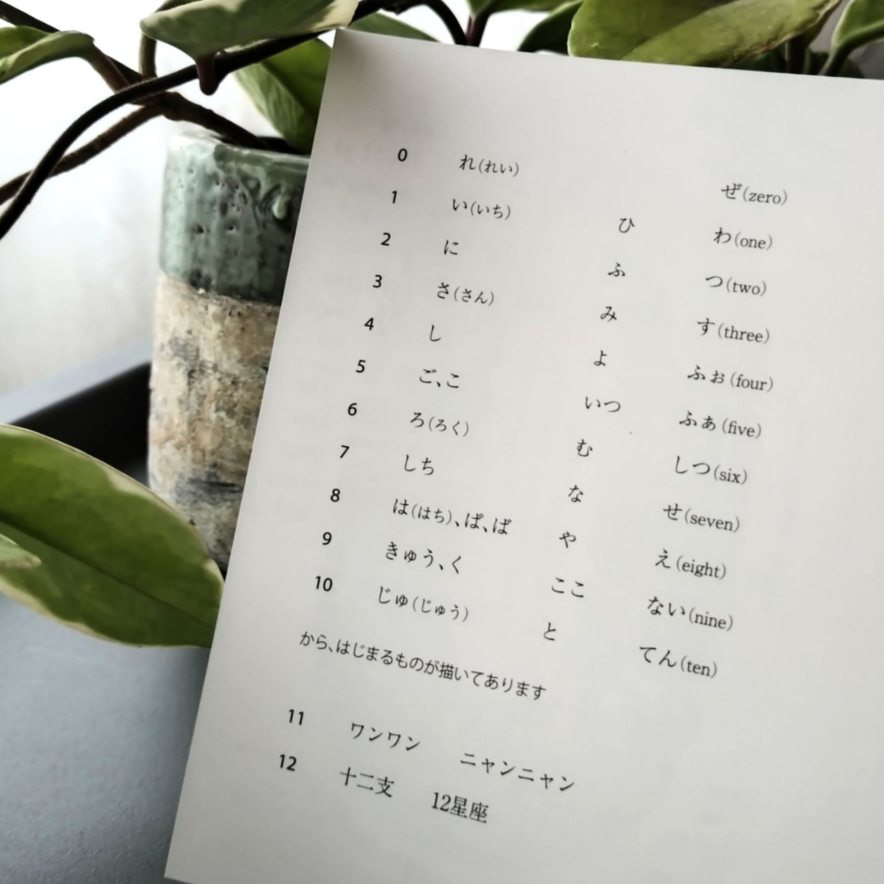 例えば「0」は「ゼ」か「レ」から始まるものが描いてあり